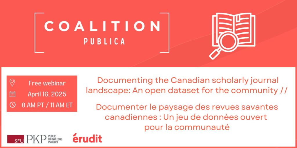 Canadian library publishers, Canadian journals hosted by library publishers, Coalition Publica journals